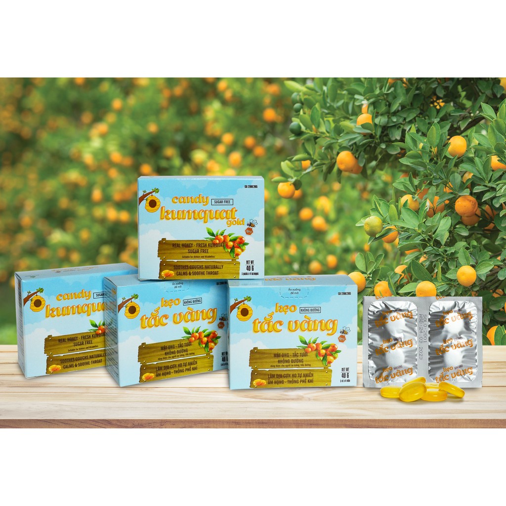 Kẹo Tắc vàng ( Hộp 5 vỉ x Vỉ 4 viên ). Hỗ trợ làm ấm họng, thông phế khí. Giúp làm dịu cơn ho